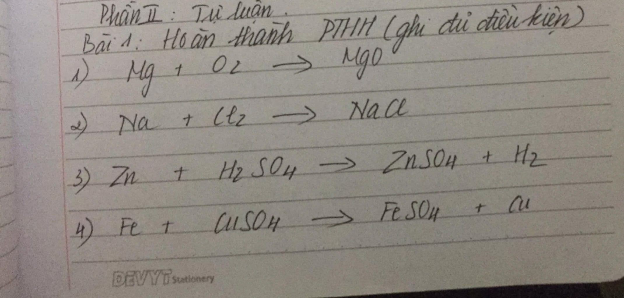 3. `Zn + H_2SO_4 → ZnSO_4 + H_2↑`
