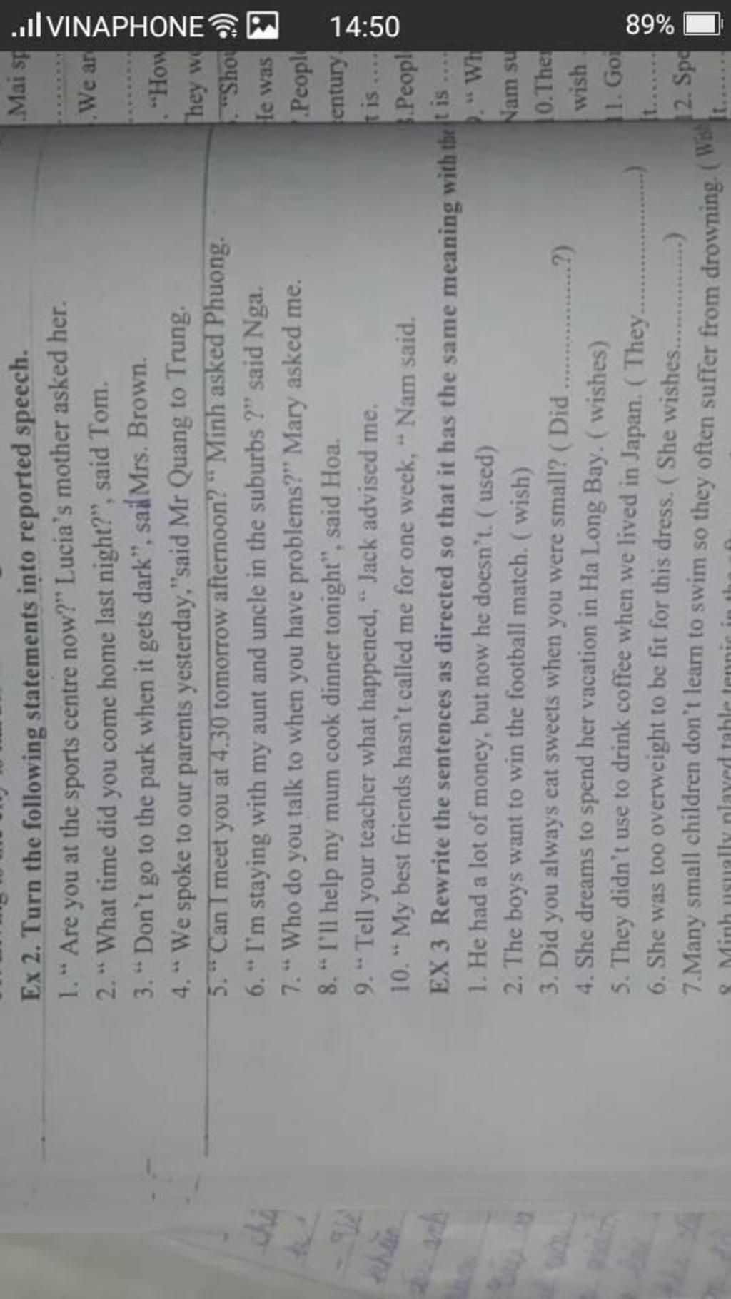 Ex2: Turn the following statements into reported speech