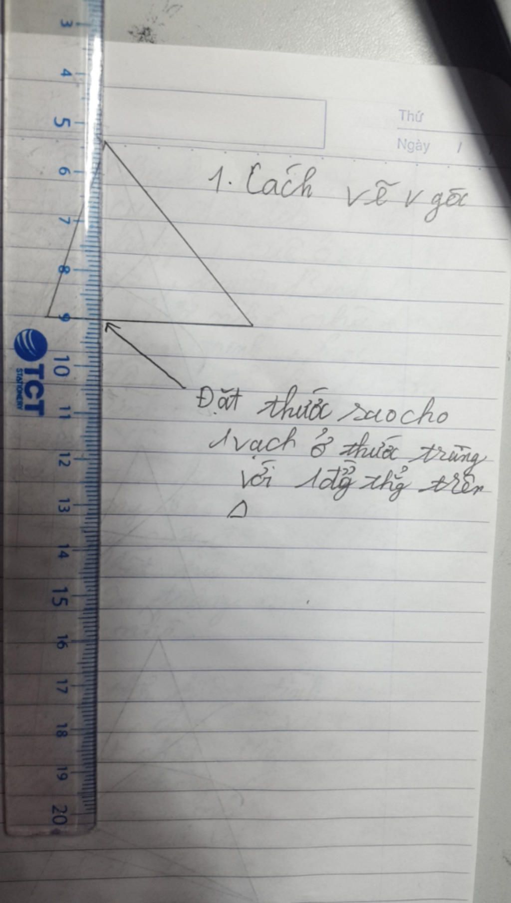 tức là bn lấy thước kẻ , rồi lấy vạch kẻ ở phần đầu áp vào hình vẽ rồi khi nào thấy trùng , và thấy vuông góc rồi thì dùng bút chì kẻ theo đường thước kẻ nhưng tay vẫn phải giữ thước chứ không bỏ ra để còn giữ điểm kẻ nha .