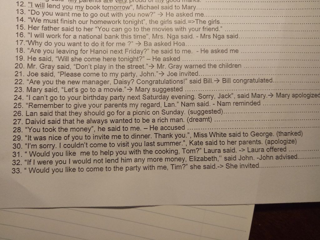 24. Mary apologized Jack for not going to his birthday party next Saturday evening