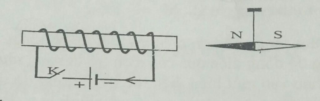 Vậy khi đóng khóa K nam châm sẽ bị đẩy ra (vì 2 cực giống nhau sẽ đẩy nhau) sau đó quay ngược lại và bị hút vào ống dây (2 cực khác nhau thì hút nhau)