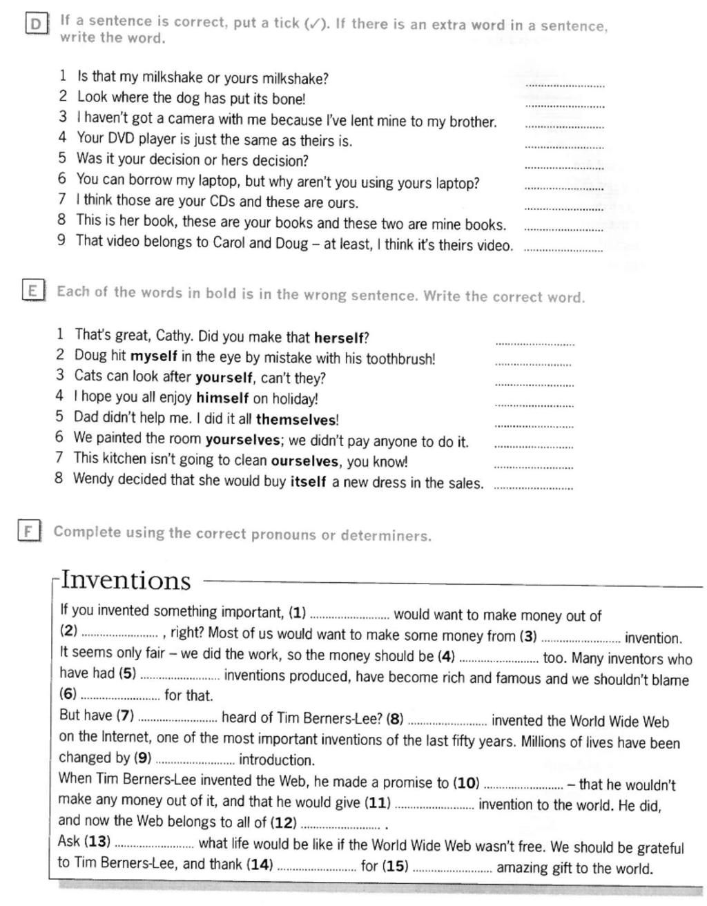 When Tim Berners-Lee invented the Web, he made a promise to (10.)himself- that he wouldn’t make any money out of it, and that he would give (11.)his invention to the world. He did, and now the Web belongs to all of (12.)us .Ask (13.)yourself/yourselves what life would be like if the World Wide Web wasn’t free. We should be grateful to Tim Berners – Lee and thank (14.) him for (15.) his amazing gift to the world.