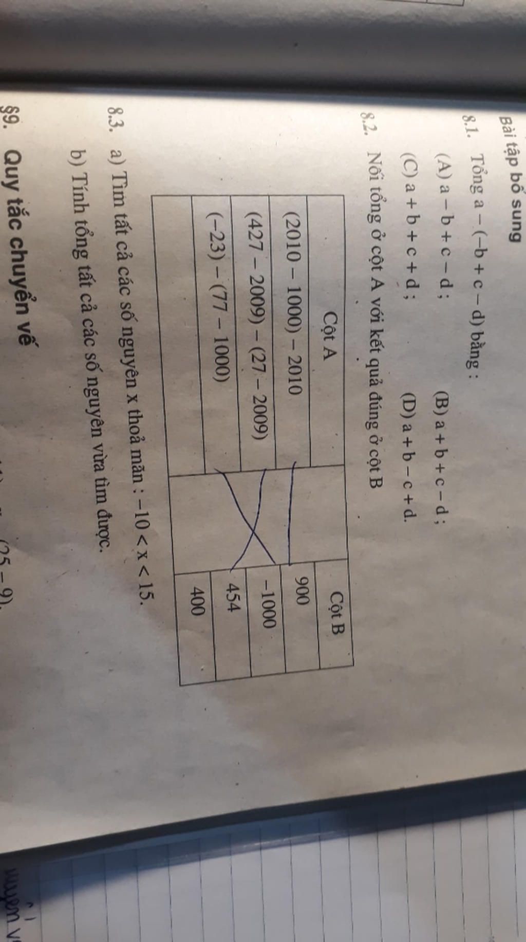 Tổng `a-(-b+c-d)`