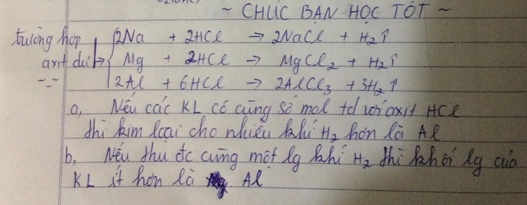 \Rightarrow \text{Nếu các kim loại có cùng số mol thì phản ứng của Nhôm sẽ cho nhiều $H_2$ hơn}\\