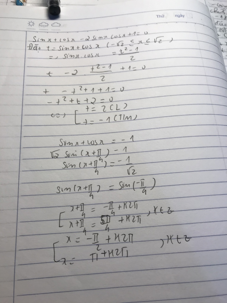 Đặt $t=\sin x+\cos x$ $-\sqrt2\le t\le\sqrt2$