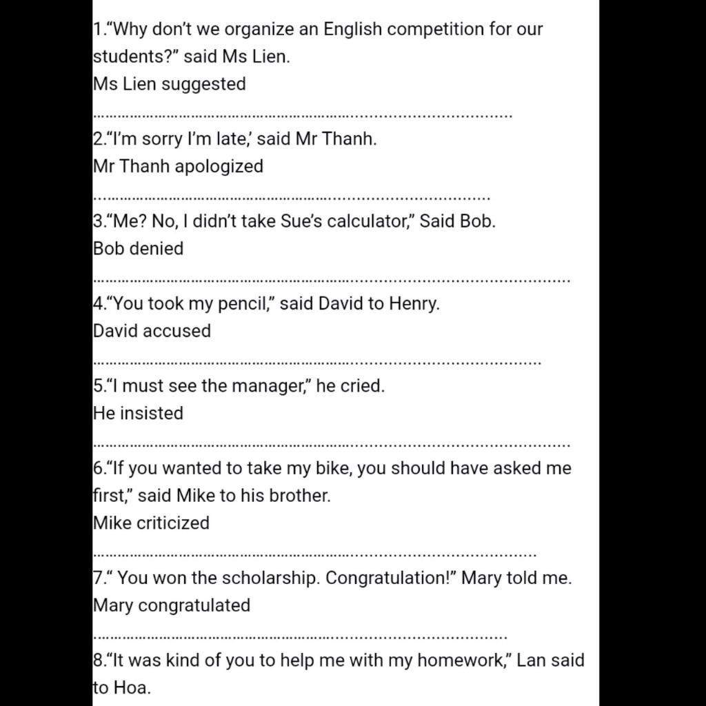 8. "It was kind of you to help me with my homework." Lan said to Hoa.