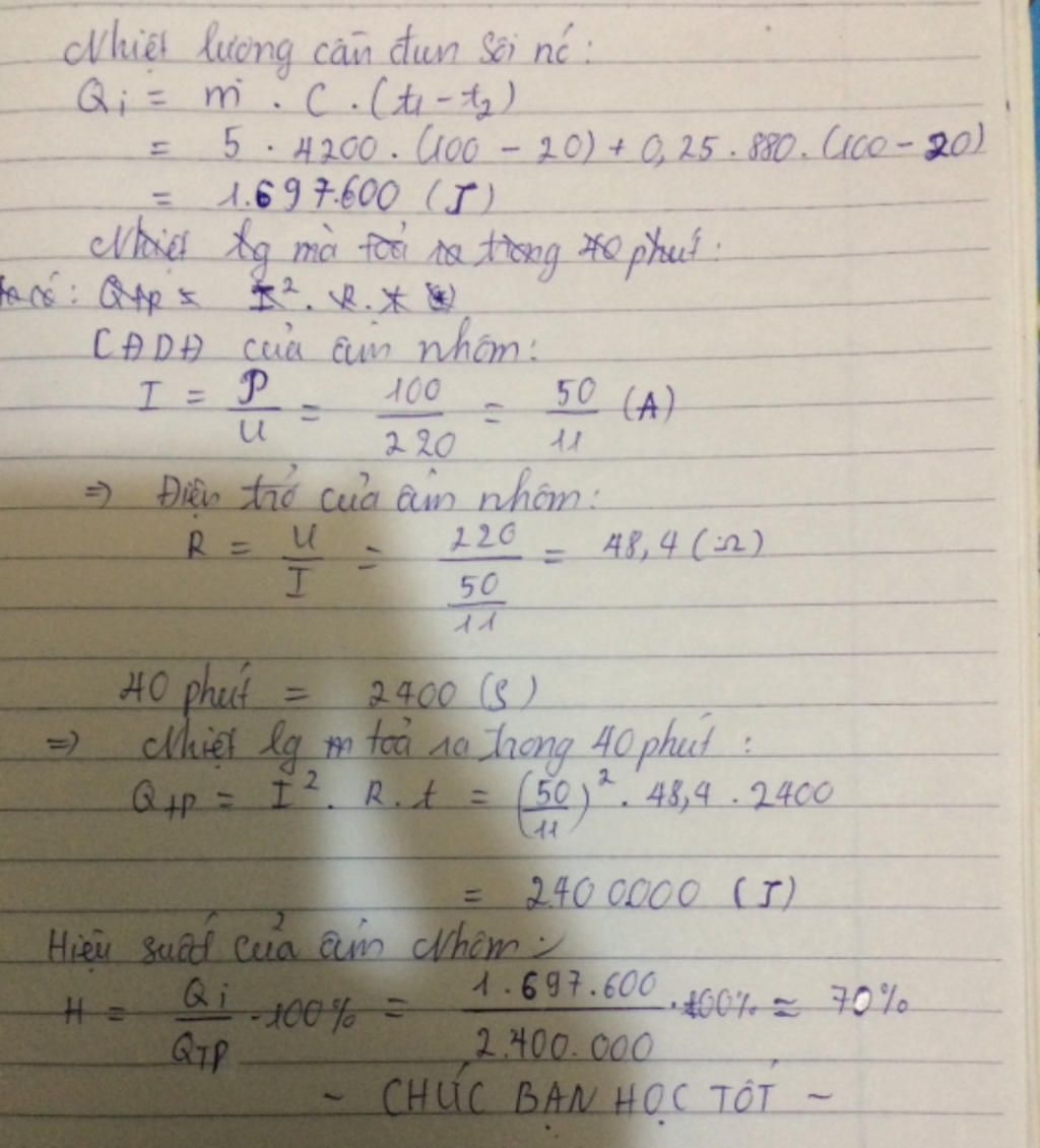 Qthu=m.c.(t1-t2) = (5.4200)(100-20)) + (0,25 . 880 ( 100 -20))=1697600(J)