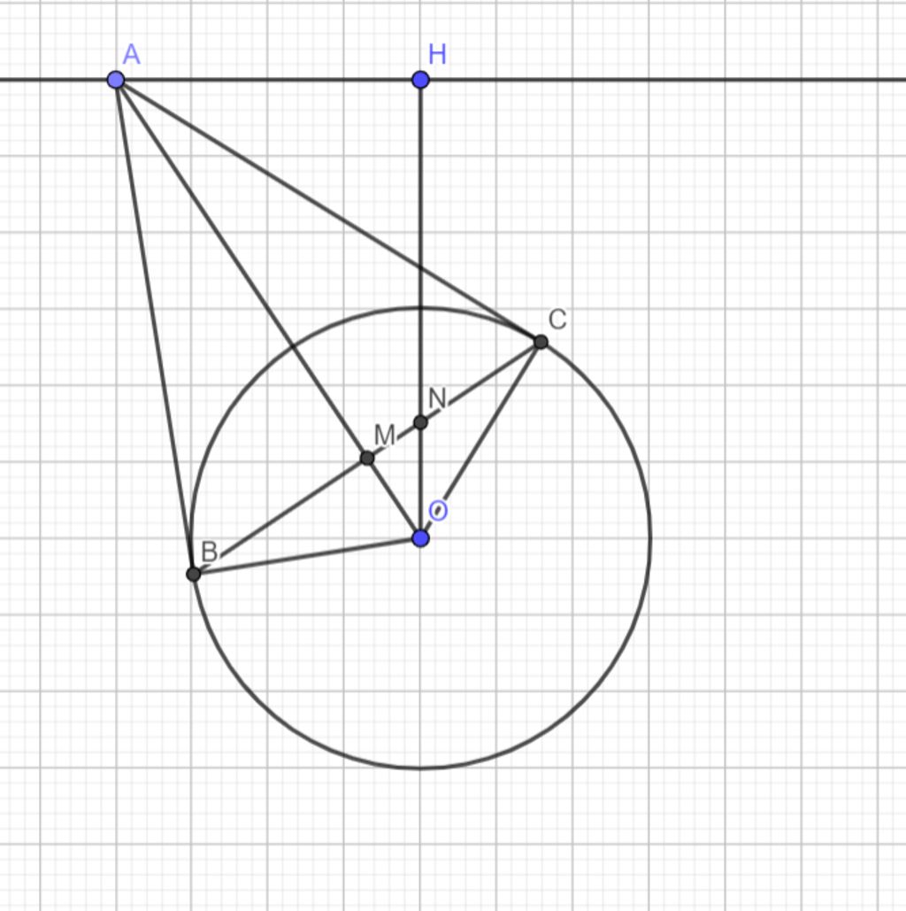 c.Ta có $AO\perp BC, OH\perp (d)\to \widehat{OMN}=\widehat{OHA}=90^o$