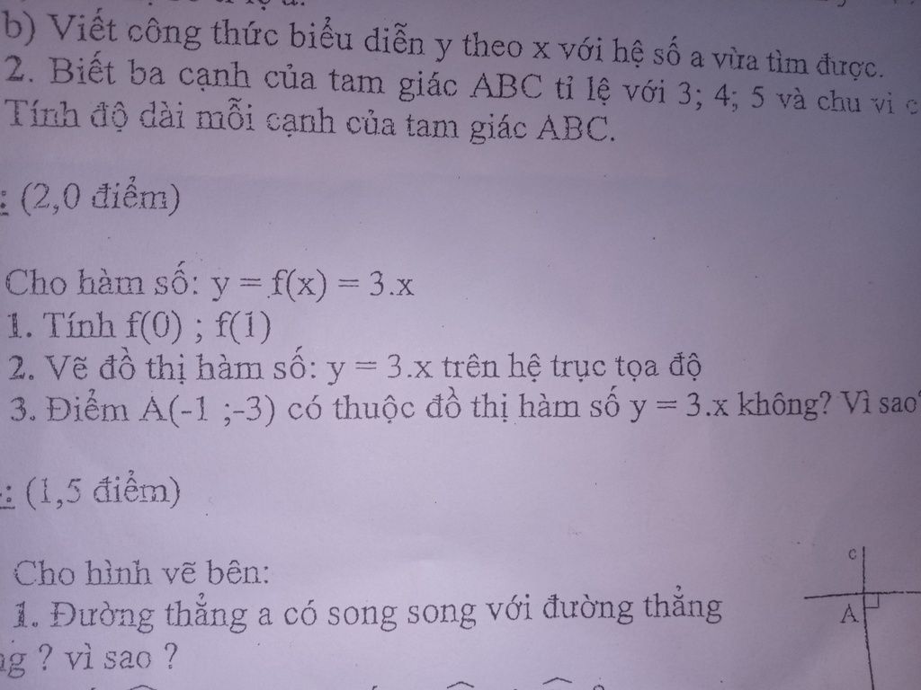 ⇒ A(-1;-3) thuộc đồ thị hàm số y=3x