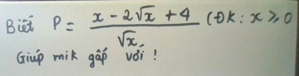 ⇔ $\frac{x-2\sqrt[]{x}+4}{\sqrt[]{x}}-2≤0$