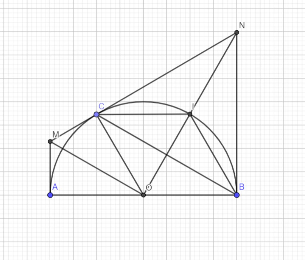 Ta có $NC$ là tiếp tuyến của $(O)\to \widehat{NCI}=\widehat{IBC}=\widehat{ICB}$