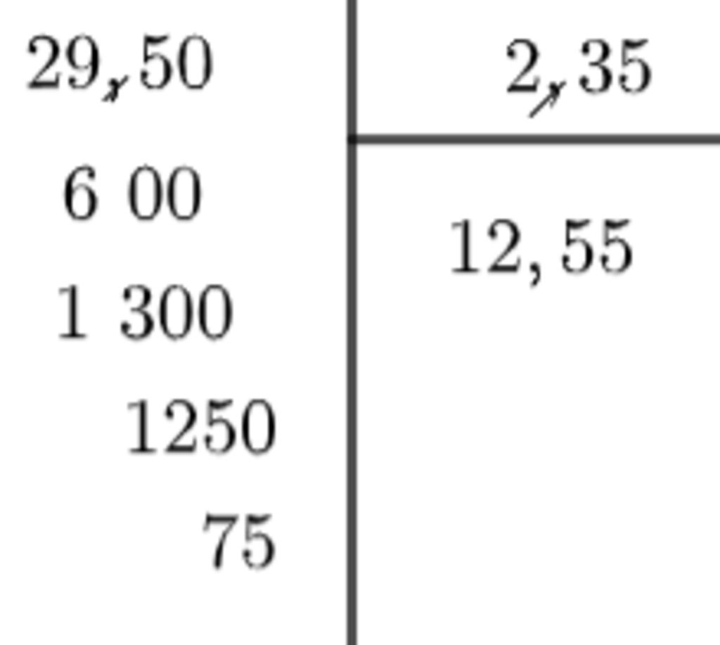 $29,5 : 2,35=12,55$ (dư $0,0075).$