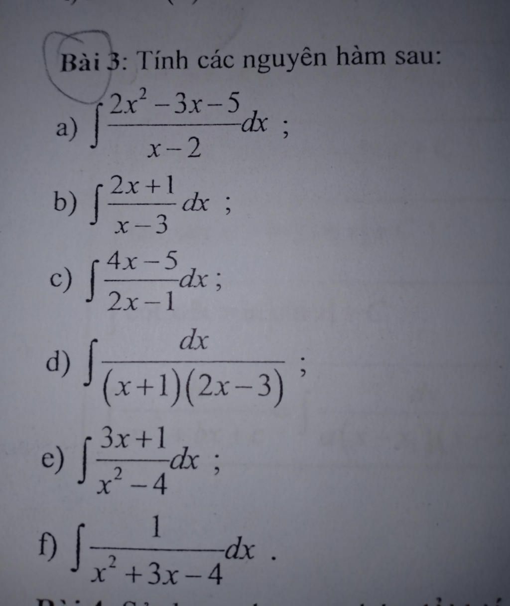 b)\int {\dfrac{{2x + 1}}{{x - 3}}dx} \\