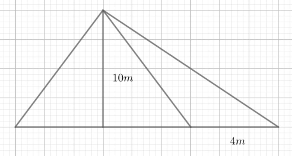 Nếu kéo dài cạnh đáy thửa đất hình tam giác thêm `4 m` thì sẽ có một hình tam giác có độ dài đáy là `4 m` và chiều cao là chiều cao của hình tam giác ban đầu.