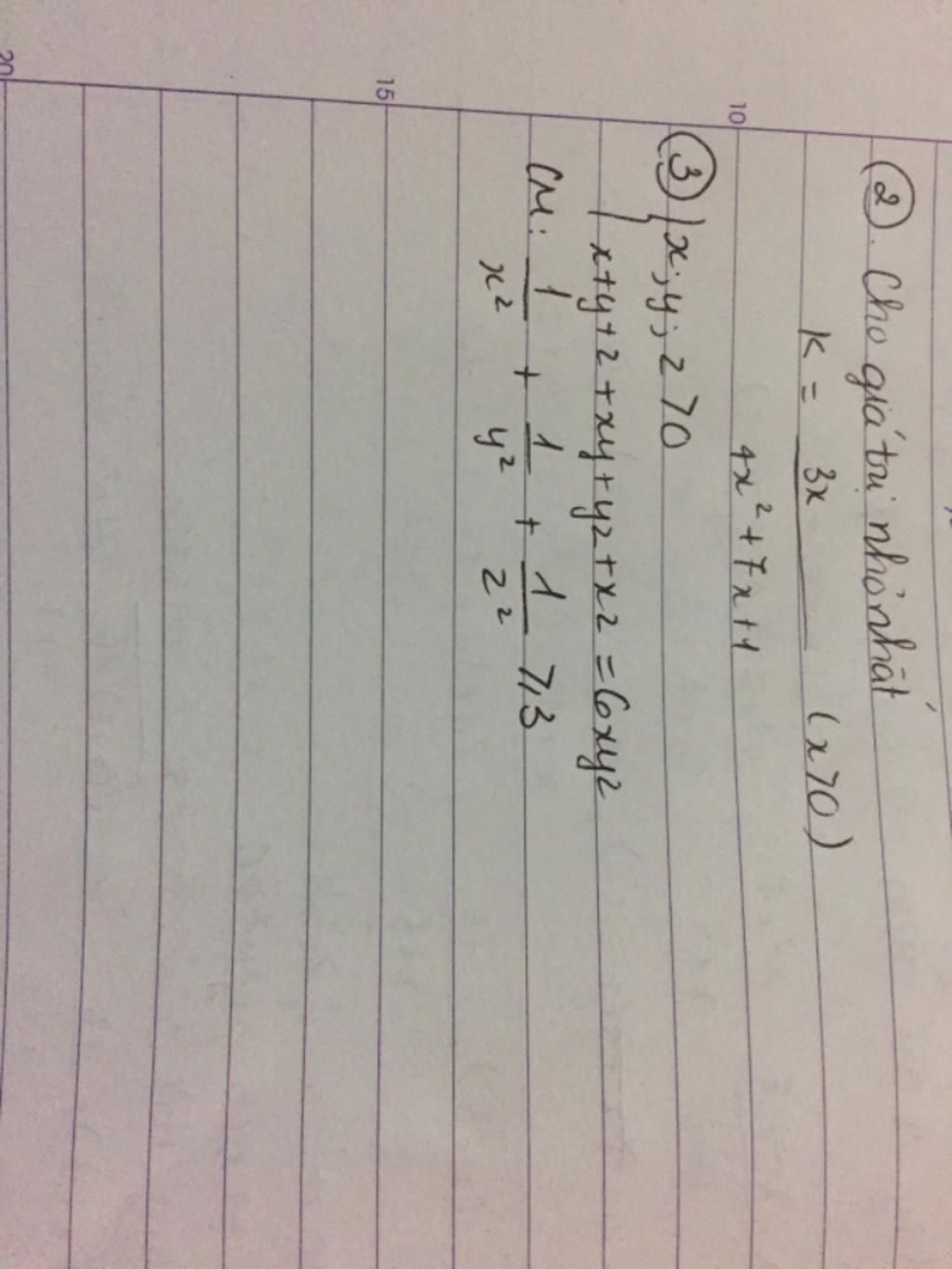 \Rightarrow 3A + 3 \ge 2.\dfrac{1}{x} + 2.\dfrac{1}{y} + 2.\dfrac{1}{z} + 2.\dfrac{1}{{xy}} + 2.\dfrac{1}{{yz}} + 2.\dfrac{1}{{xz}}\\