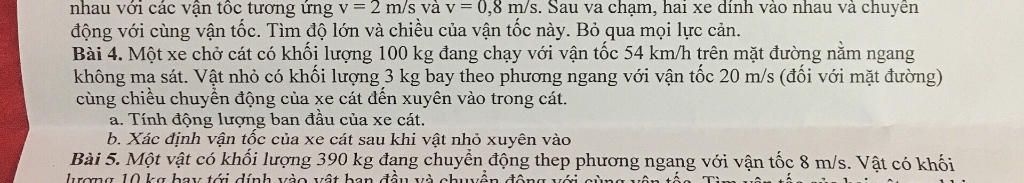 b, Nhận thấy đây là va chạm mềm, áp dụng định luật bảo toàn động lượng, ta có: