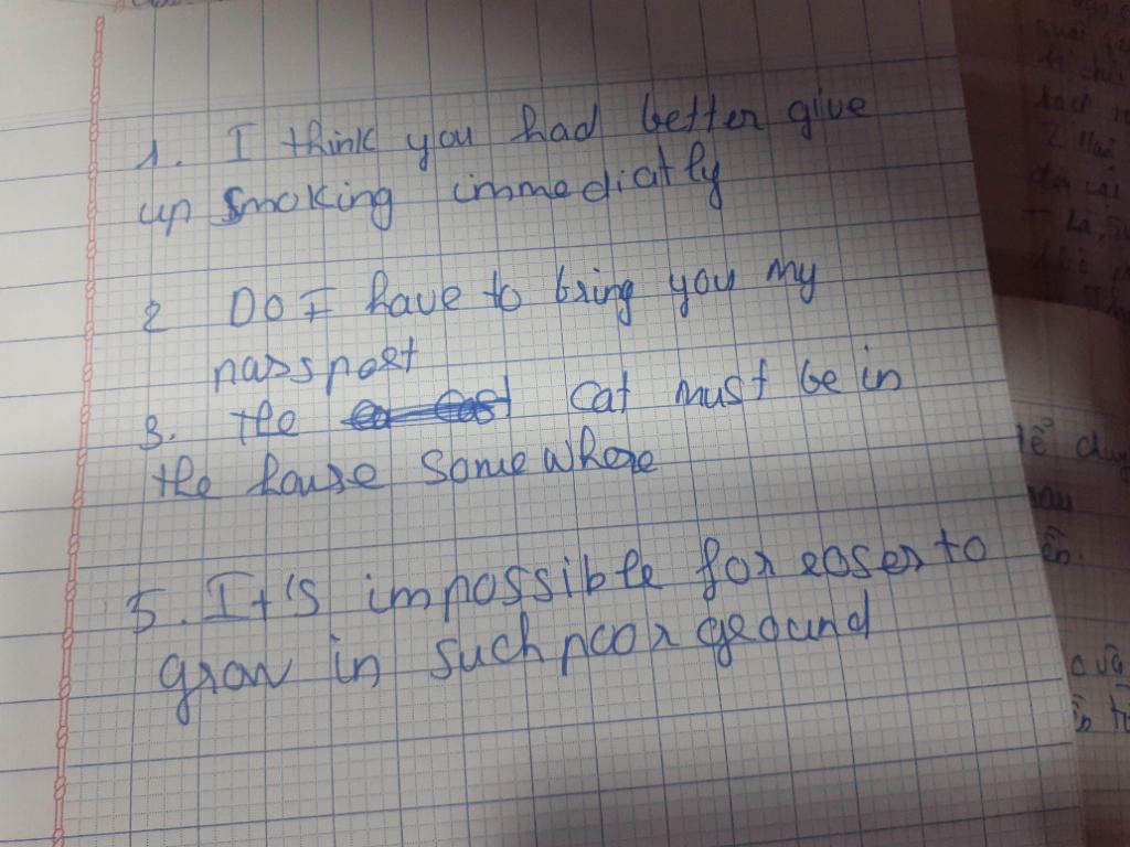 3. I am sure that the cat must be in the house somewhere. -> must V ~ phải làm gì