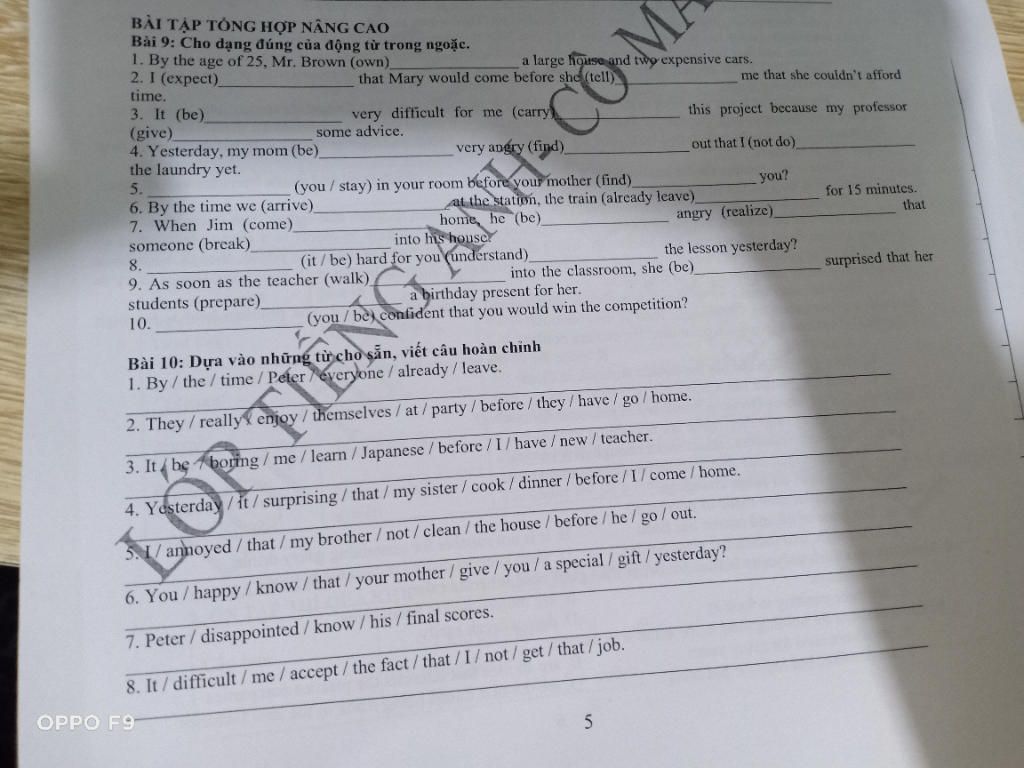Bài 9: Cho dạng đúng của động từ trong ngoặc.