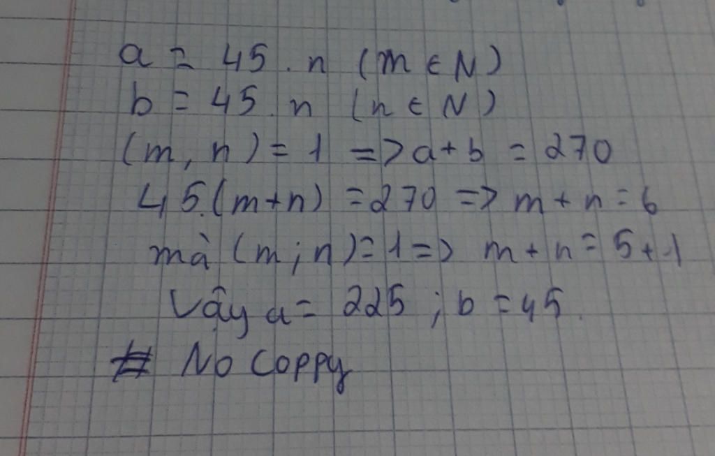 ` ( m , n ) = 1 ⇒ a + b = 270 ; 45 . ( m + n ) = 270 ⇒ m + n = 6 `