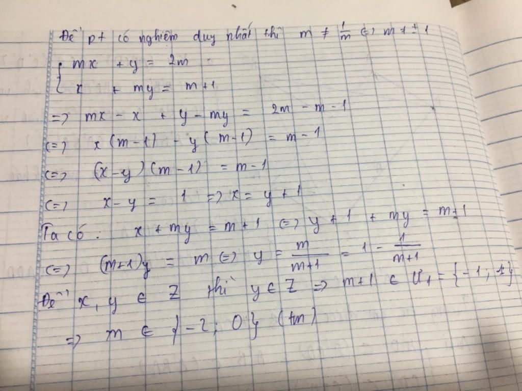 Để hệ phương trình có hệ nghiệm duy nhất là các số nguyên thì