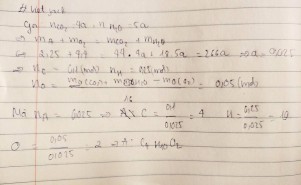 $\Rightarrow n_O=\dfrac{2,25-0,1.12-0,25}{16}=0,05(mol)$