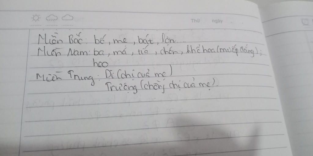– Vợ em trai của mẹ: Cả 3 miền gọi là Mợ – người Trung còn gọi là “Mự.”