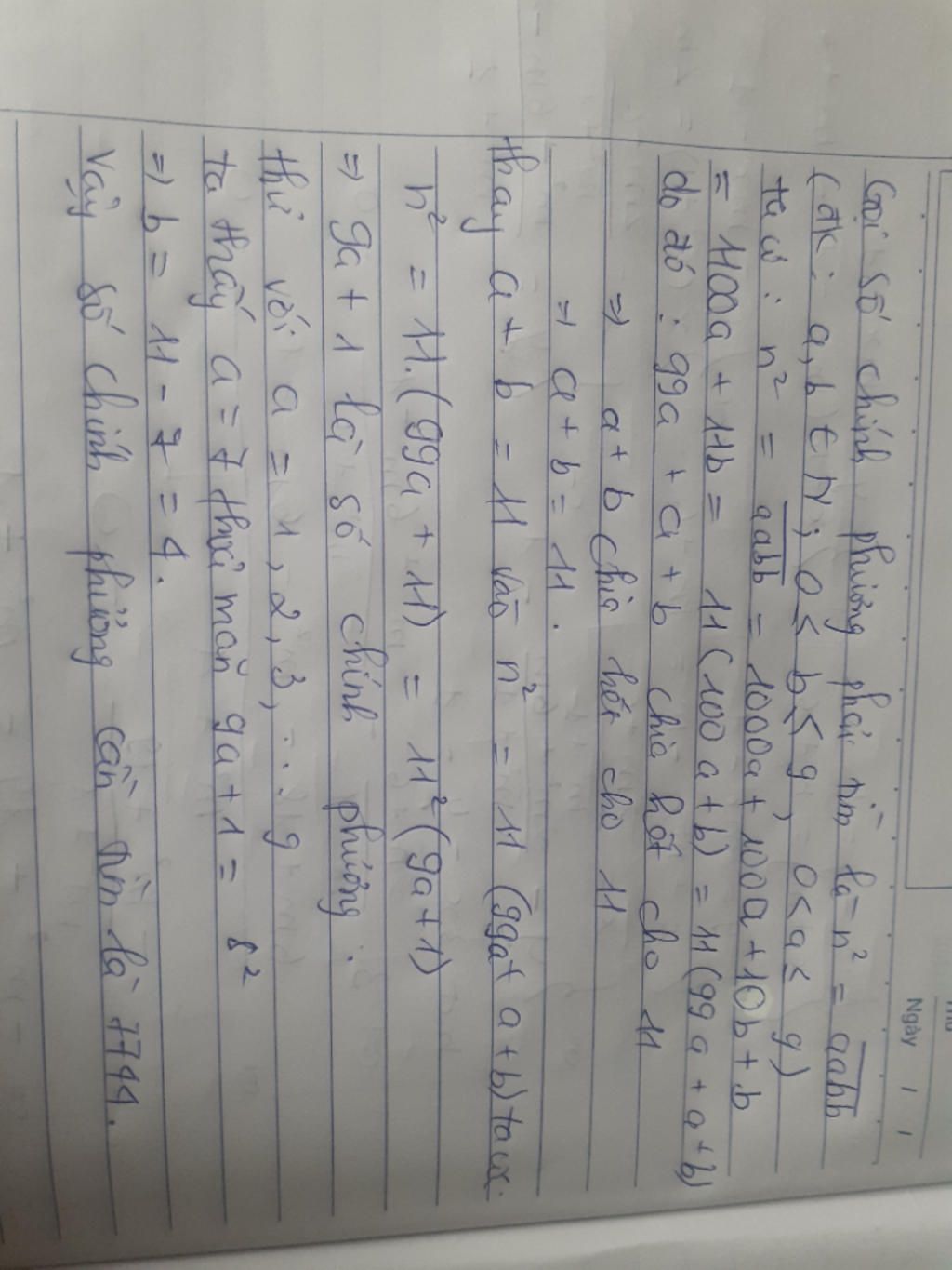 Gọi số chính phương cần tìm là aabb = $x^{2}$