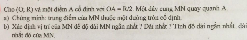 Cho (O; R) và một điểm A cố định với OA = R/2. Một dây cung MN quay quanh A.