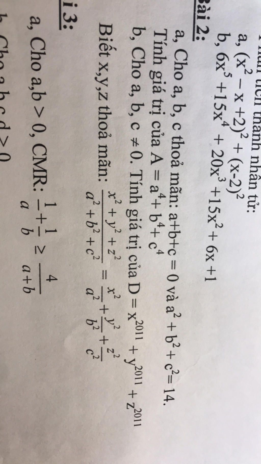 `-> a^2b^2+b^2c^2+c^2a^2=49` `(vì ` `a+b+c=0)`