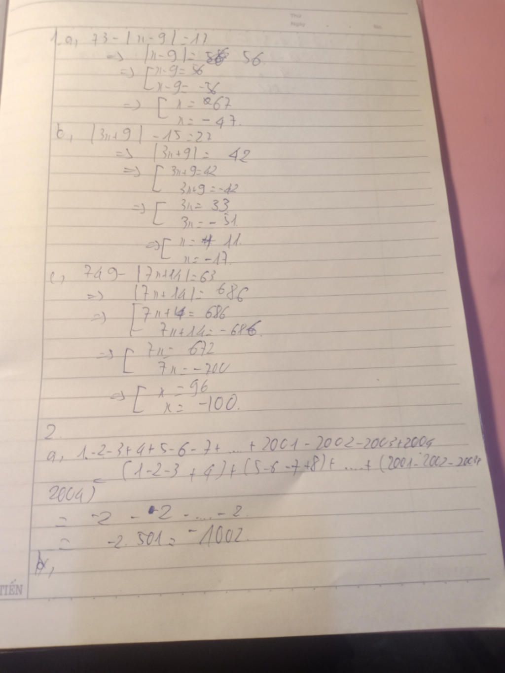 a)1-2-3+4+5-6-7+...+2001-2002-2003+2004