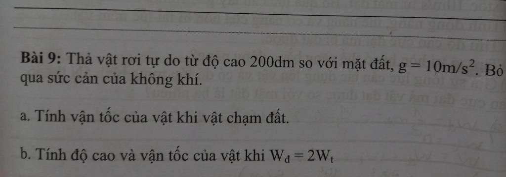 ⇒ `v'=\sqrt{\frac{4gh}{3}}=\sqrt{\frac{4.10.20}{3}}=\frac{20\sqrt{6}}{3}` $(m/s)$