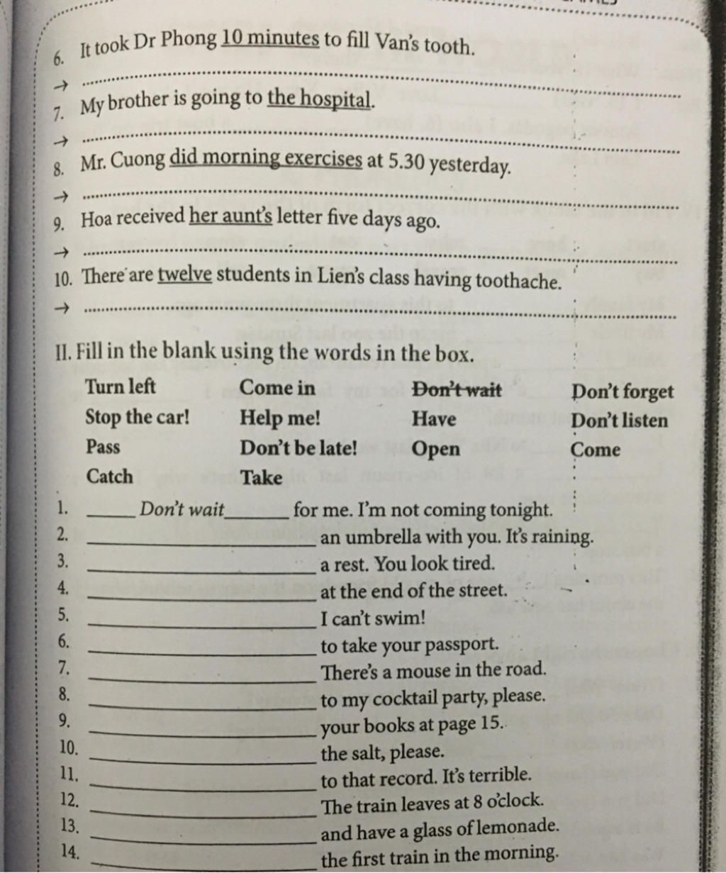 9 Hoa received her aunt's letter five days ago.