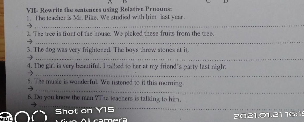 -> 1. The teacher with whom we studied last year is Mr. Pike.