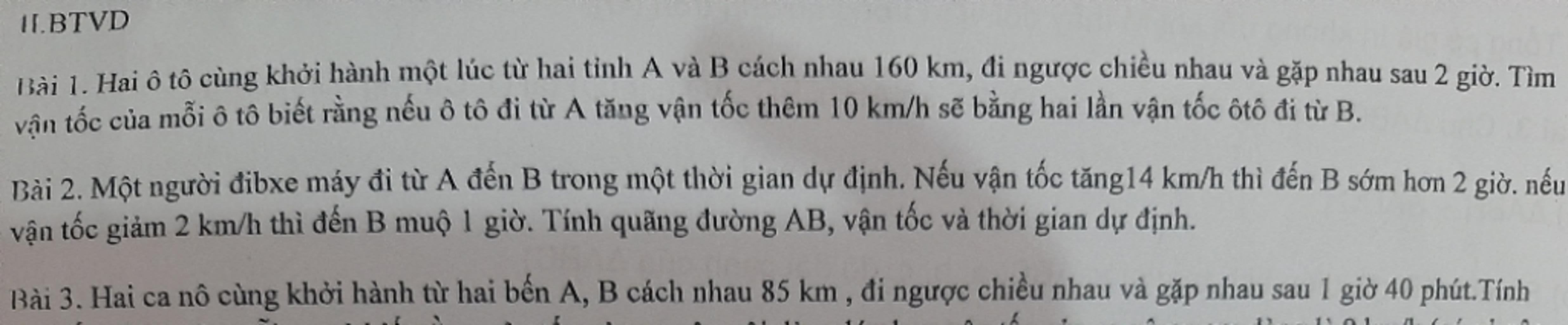 Gọi vận tốc ô tô đi từ $A, B$ lần lượt là $a,b(km/h), (a,b>0)$