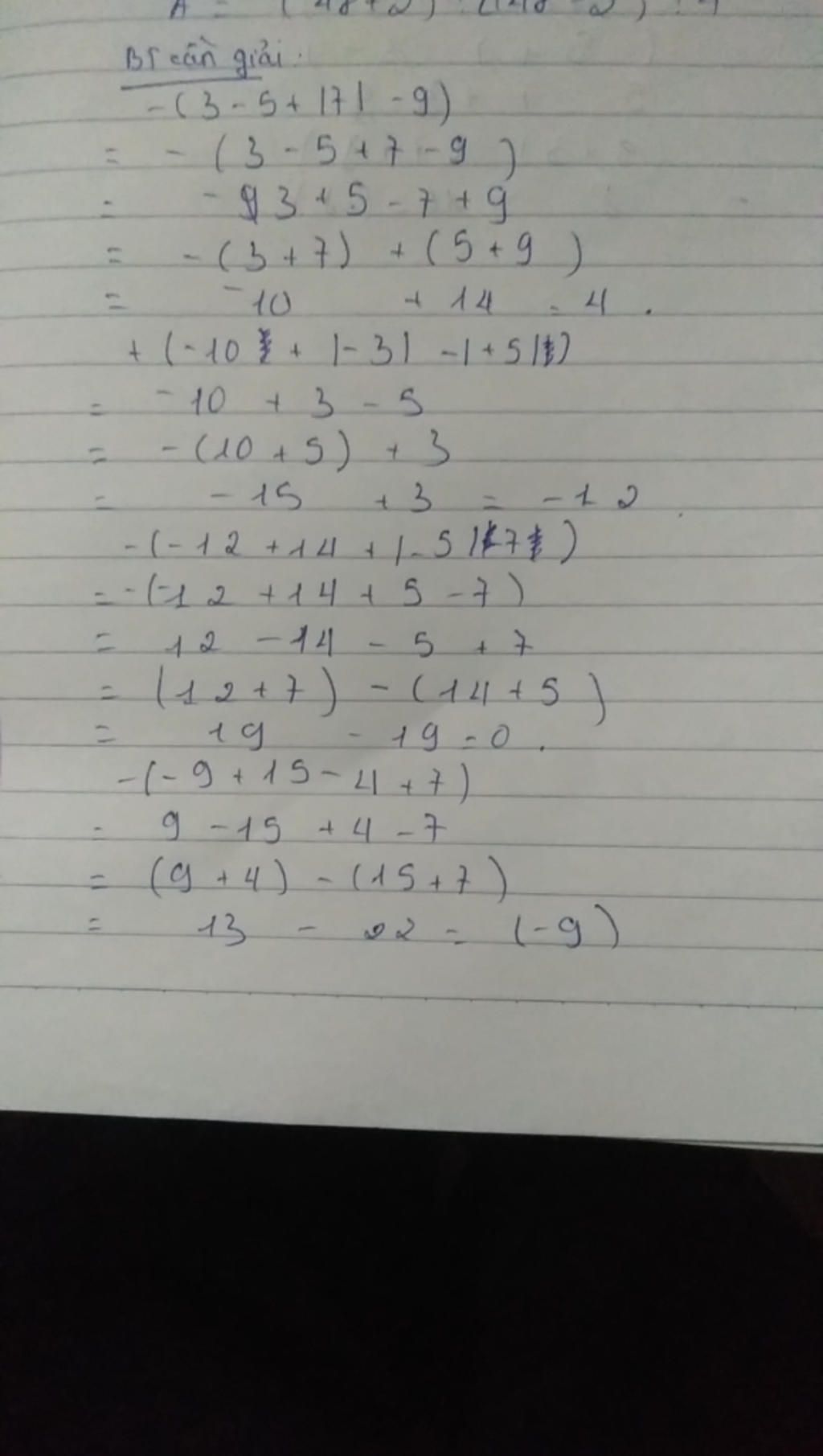 g) `-(-|-5| + |-7| - 3 + 9)`