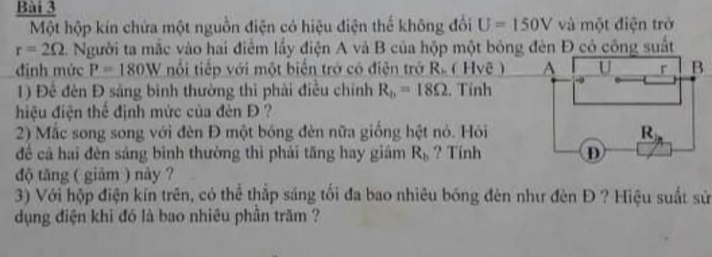 Ta có U.I = (r+$R_{b}$)I²+n.P = U.n.$I_{d}$ = (r+$R_{b}$).n.$I²_{d}$+n.P