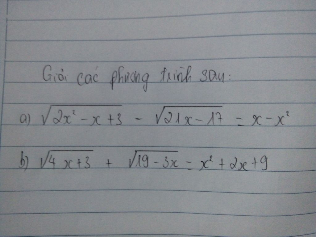 a)\sqrt {2{x^2} - x + 3} - \sqrt {21x - 17} = x - {x^2}\\