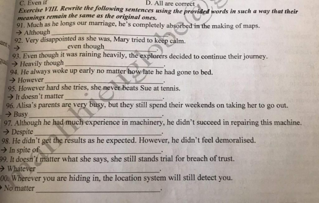 VIII. Rewrite the following sentences using the provided words in such a way that their