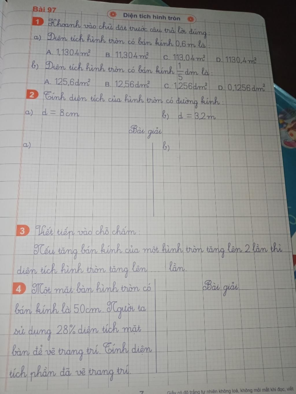 Vậy nếu tăng bán kính của 1 hình tròn lên 2 lần thì diện tích tăng lên 4 lần