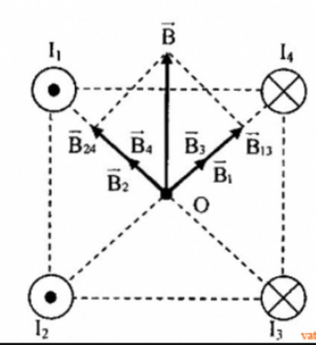 & {{B}_{1}}={{B}_{2}}={{B}_{3}}={{B}_{4}}={{2.10}^{-7}}.\frac{I}{r} \\