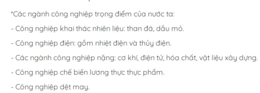 - Công nghiệp điện: Gồm nhiệt điện và thủy điện. Mỗi năm sản xuất trên 40 tỉ Kwh và sản lượng điện ngày càng tăng để đáp ứng nhu cầu của nền kinh tế.