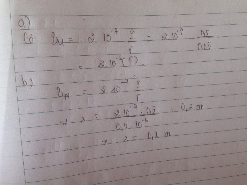 ${{B}_{M}}={{2.10}^{-7}}.\frac{I}{r}={{2.10}^{-7}}.\frac{0,5}{0,05}={{2.10}^{-6}}T$