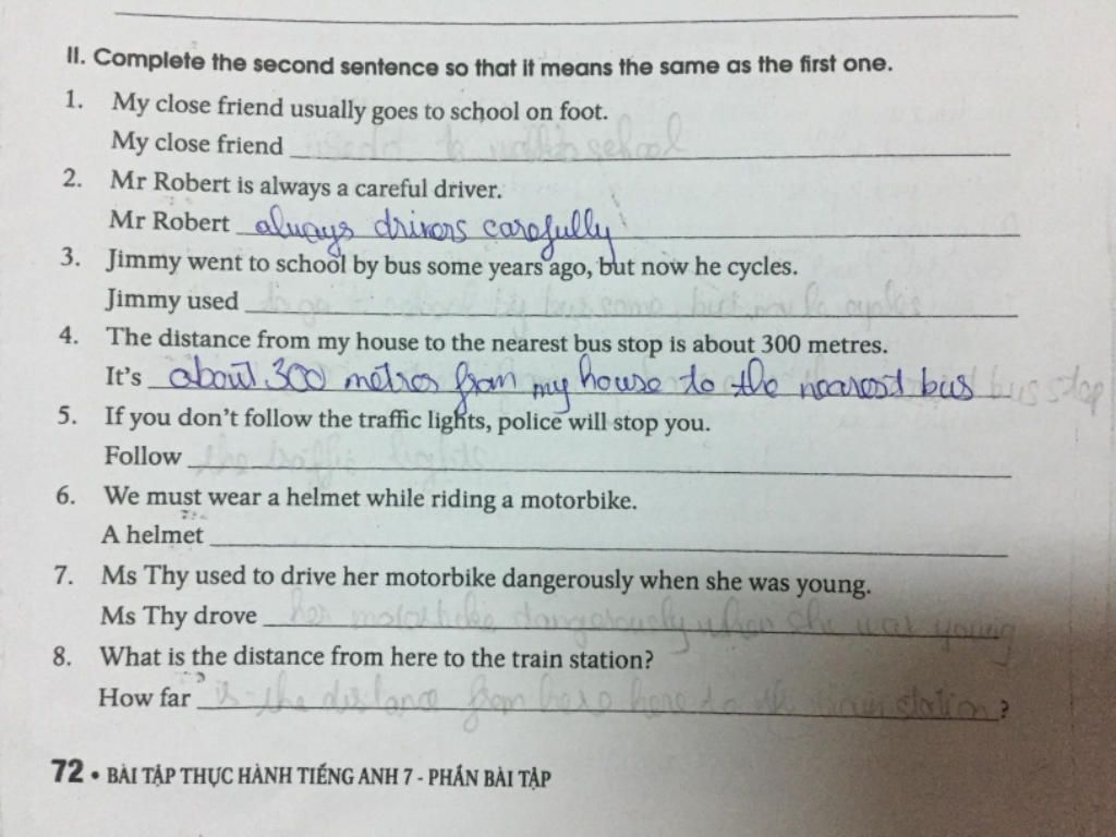 II. Complete the second sentence so that it means the same as the first one.