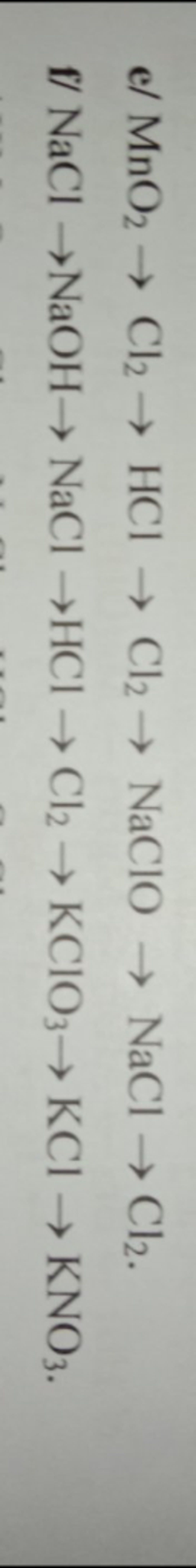 e) 4HCl+ MnO2 —to—> Cl2+ 2H2O+ MnCl2