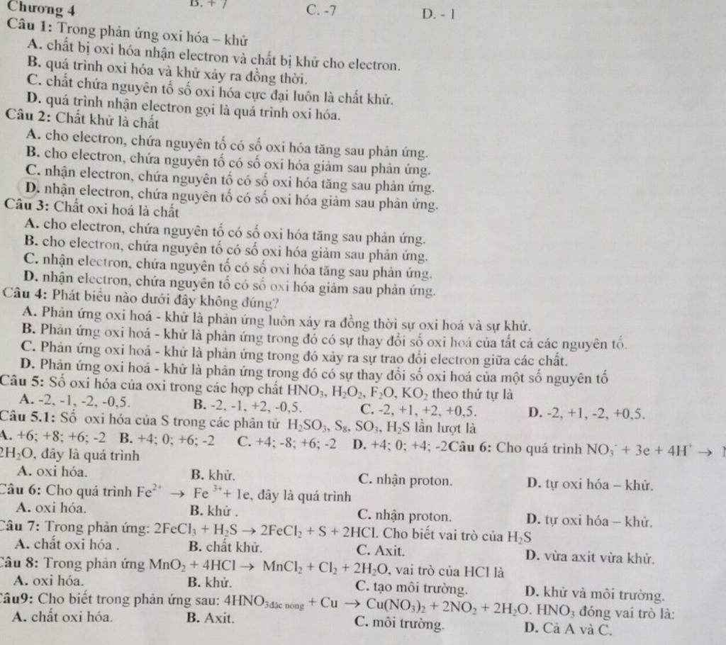 C. chất chứa nguyên tố số oxi hóa cuc đai luôn là chất khử.