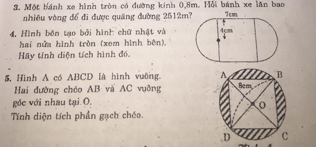 Hình cần tính gồm hai nửa hình tròn bán kính $4cm$ và hình chữ nhật có chiều rộng $7cm$; chiều dài là: $4×2=8cm$