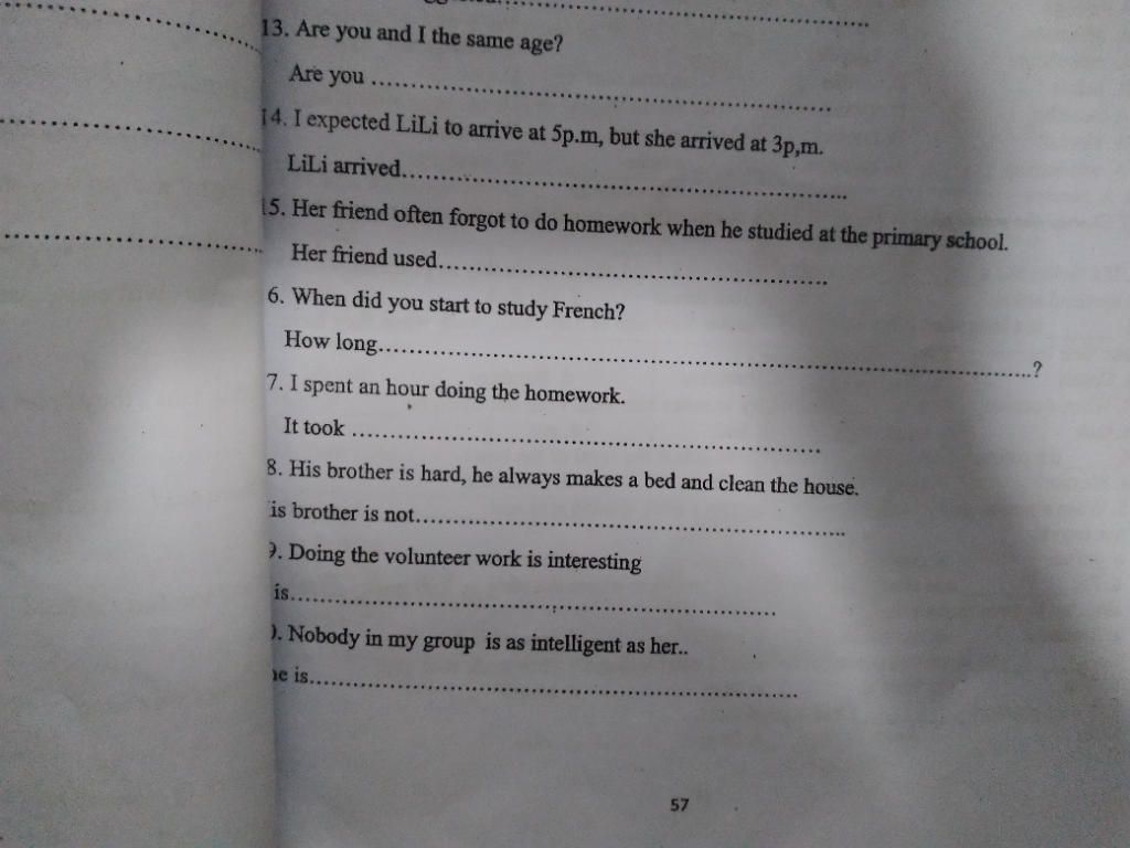 17. me an hour to do the homework.