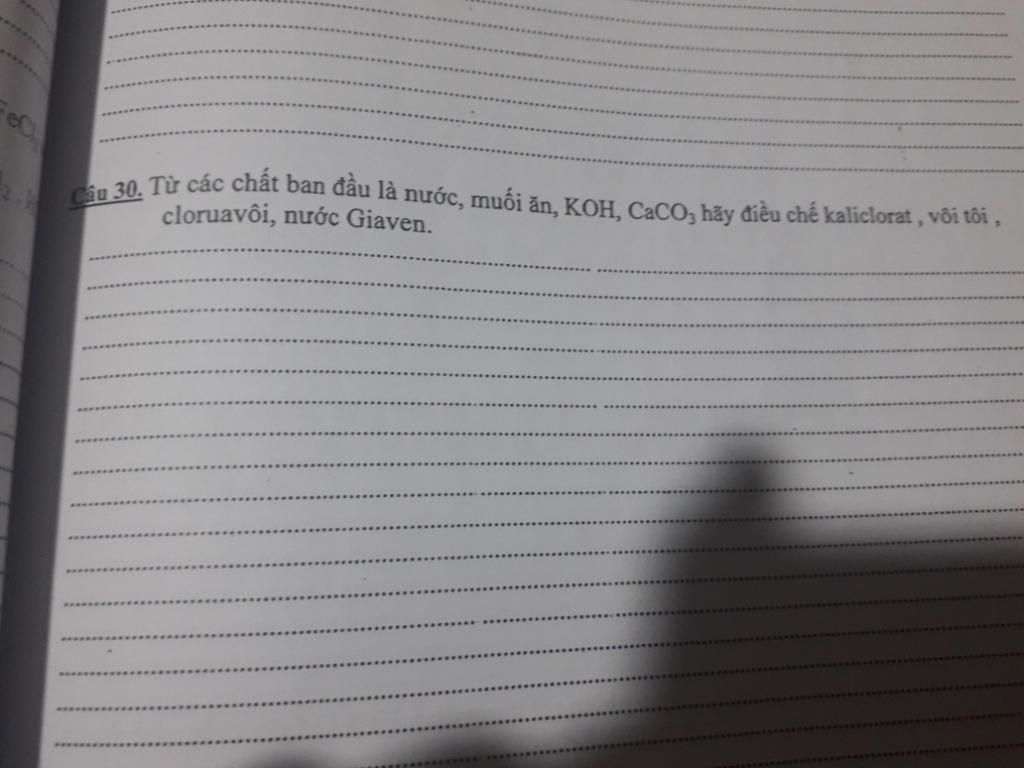 \(6KOH + 3C{l_2}\xrightarrow{{{t^o}}}KCl{O_3} + 5KCl + 3{H_2}O\)