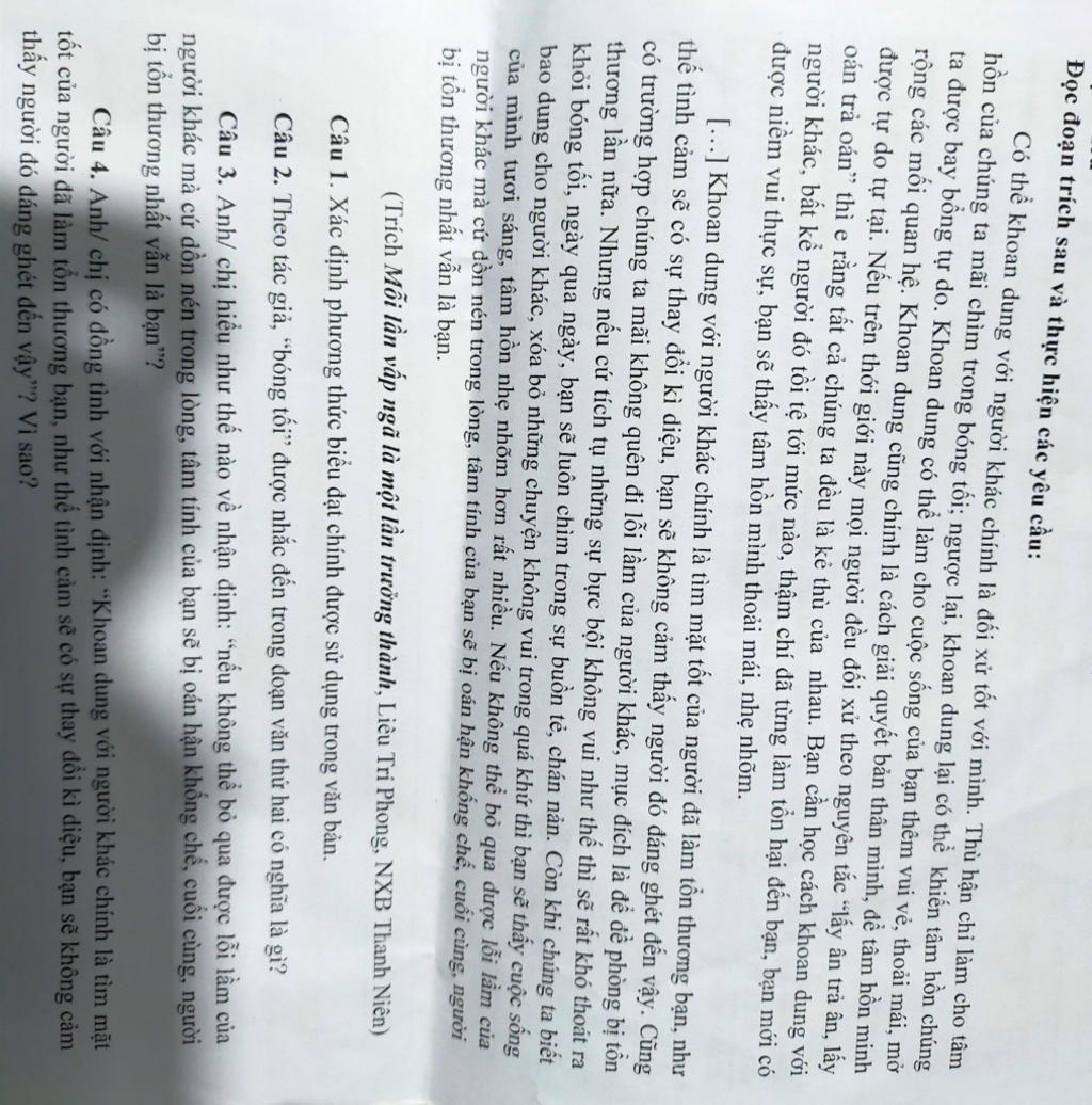 2, Từ "bóng tối" được nhắc đến trong đoạn văn thứ hai có nghĩa là những sự tổn thương mà người khác gây ra cho chúng ta
