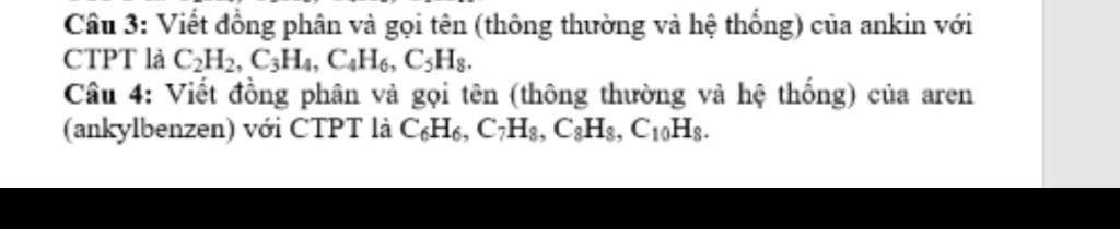 Câu 3: Viết đồng phân và gọi tên (thông thường và hệ thống) của ankin với